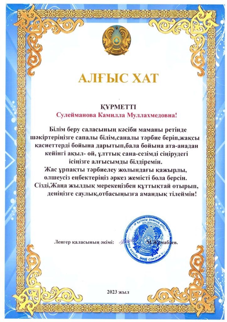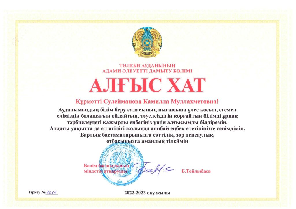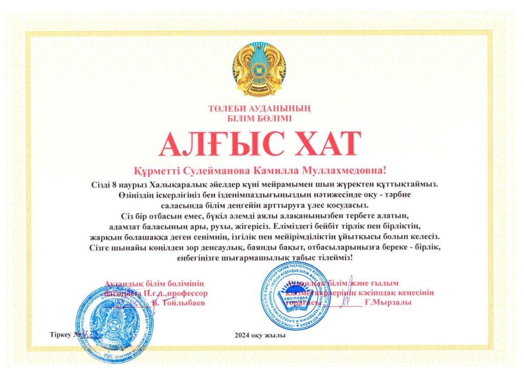 ДОСТЫҚ МЕКТЕПАЛДЫ