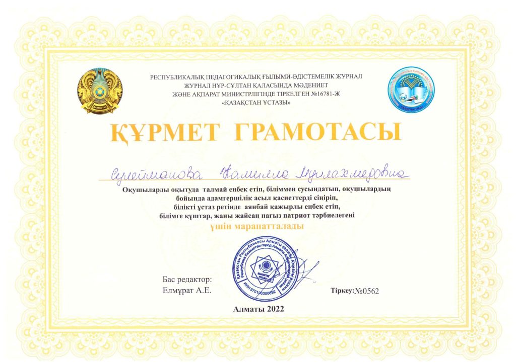 ӘДІСТЕМЕЛІК ЖҰМЫС