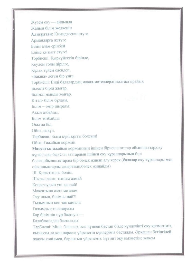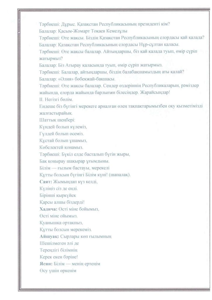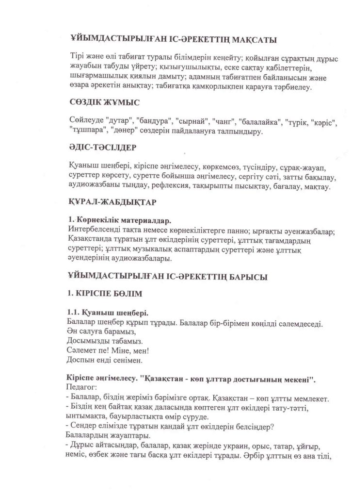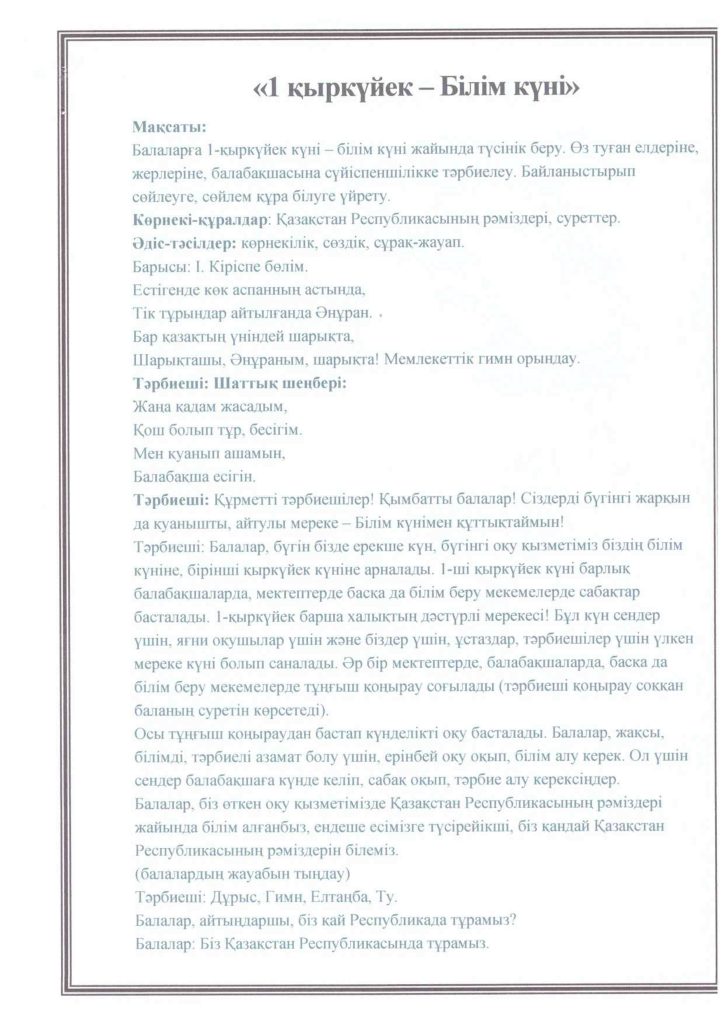 «БІРТҰТАС ТӘРБИЕ» БАҒДАРЛАМАСЫ ІС-ШАРАЛАРЫ